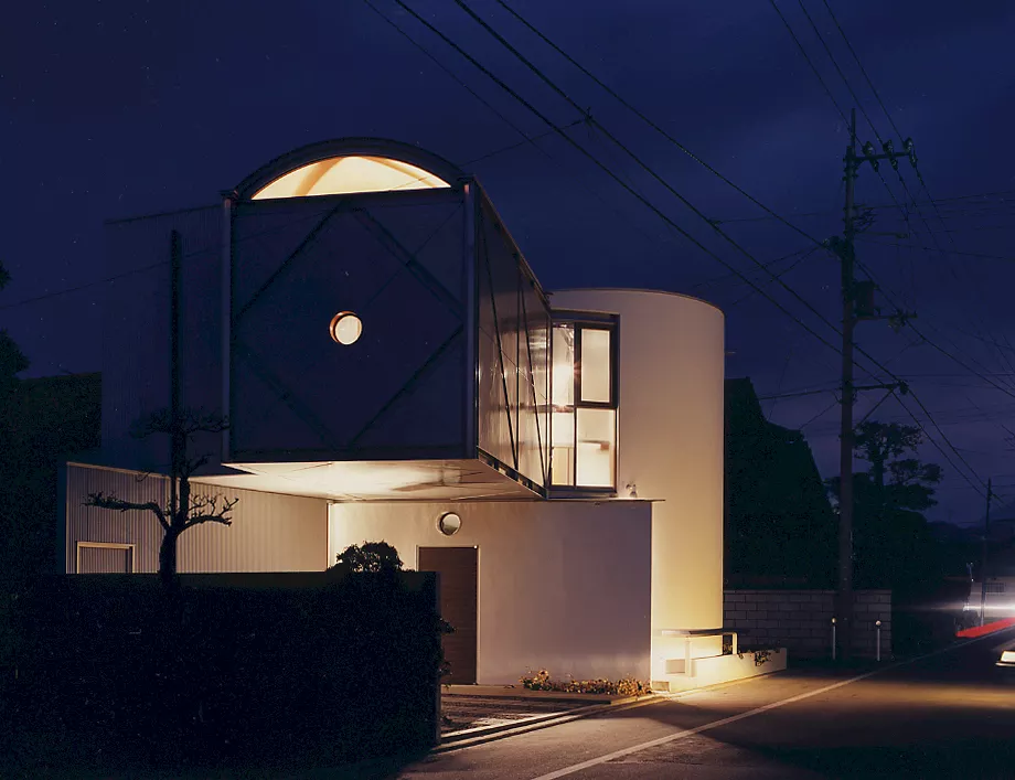 敷地の形状は不整形であるが、建築の明確な幾何学的形態と軸線をずらした計画で、特徴のない街並みに緊張感とダイナミズムを生み出した。